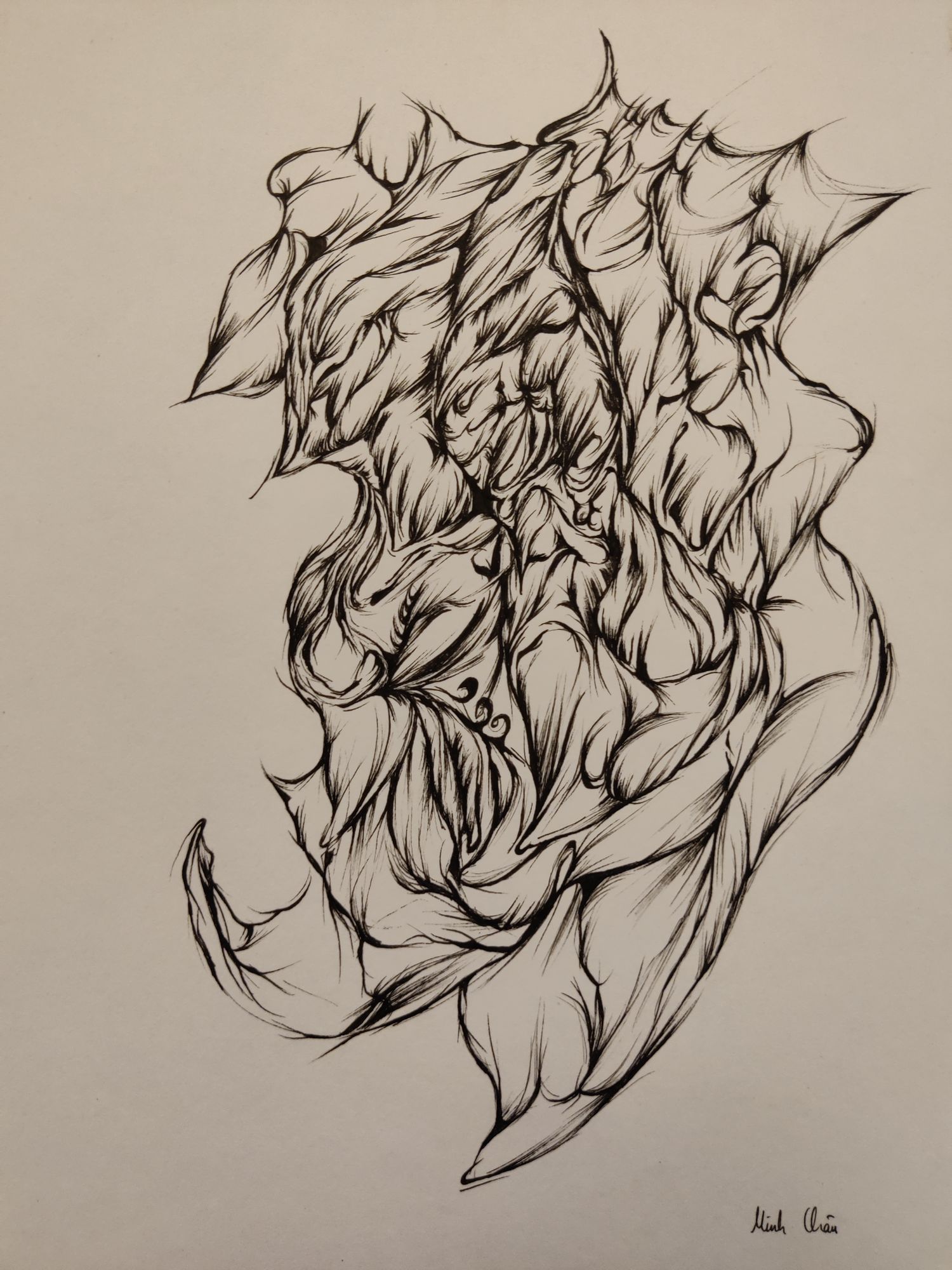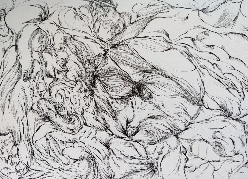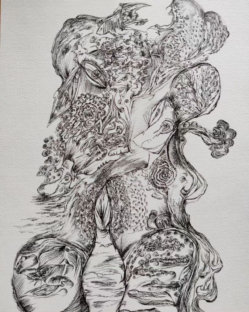 “Becoming trees”. Fineliner on paper 21×30“Behind a wandering mind”. Fineliner on paper 21×30“A body in function”. Fineliner on paper 21×30“The bloom was never gentle”. Fineliner on paper 21×30“A dancing mountain”. Fineliner on paper 21×30Untitled. Fineliner on paper 21×30“A lift”. Fineliner on paper 21×30“A statue”. Fineliner on paper 21×30“A portrait”. Fineliner on paper 21×30“Looking at you from another dimension”. Fineliner on paper 21×30Untitled. Fineliner on paper 21×30Untitled. Fineliner on paper 21×30