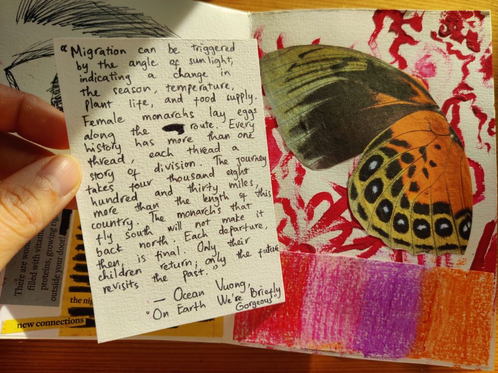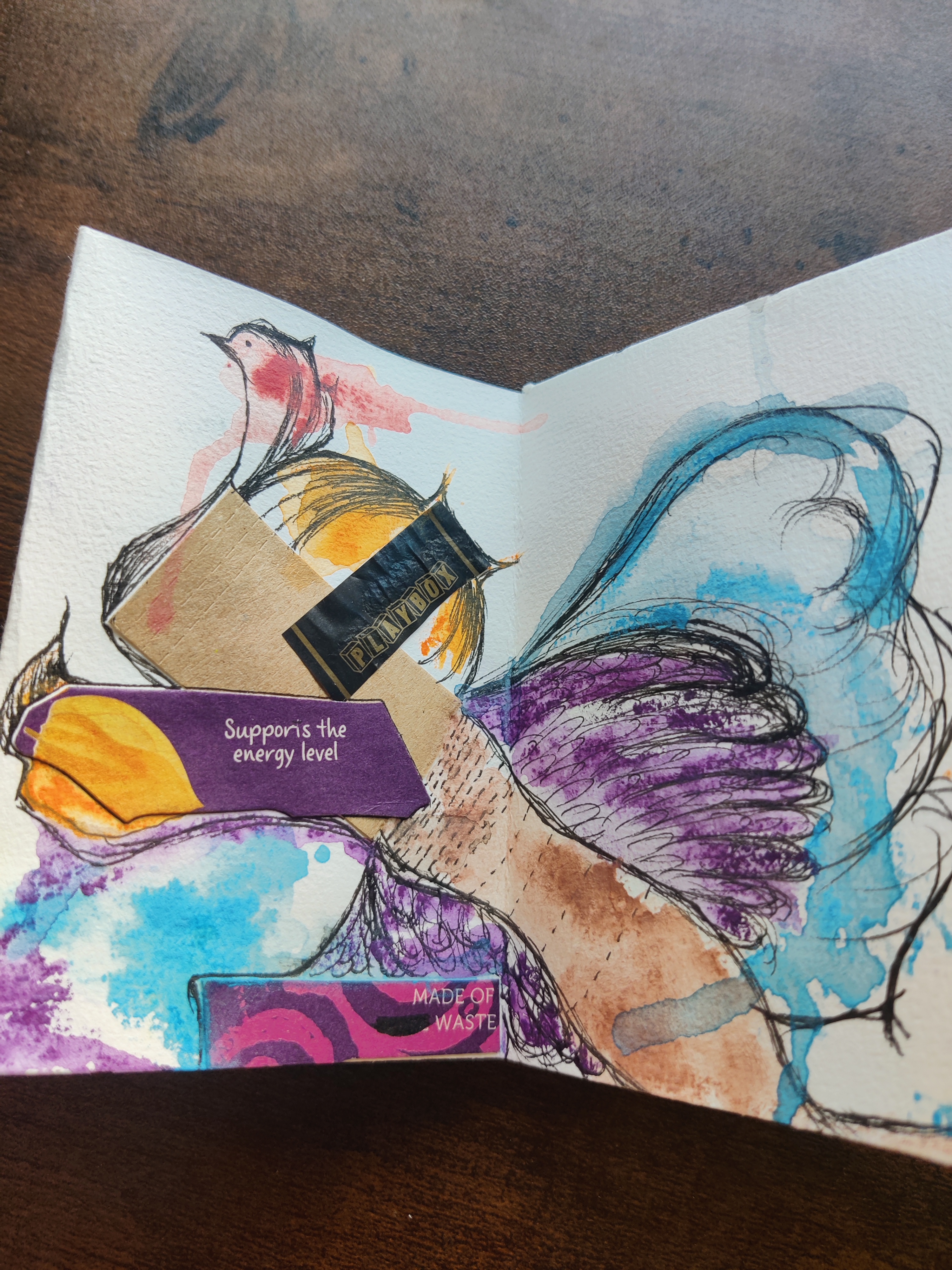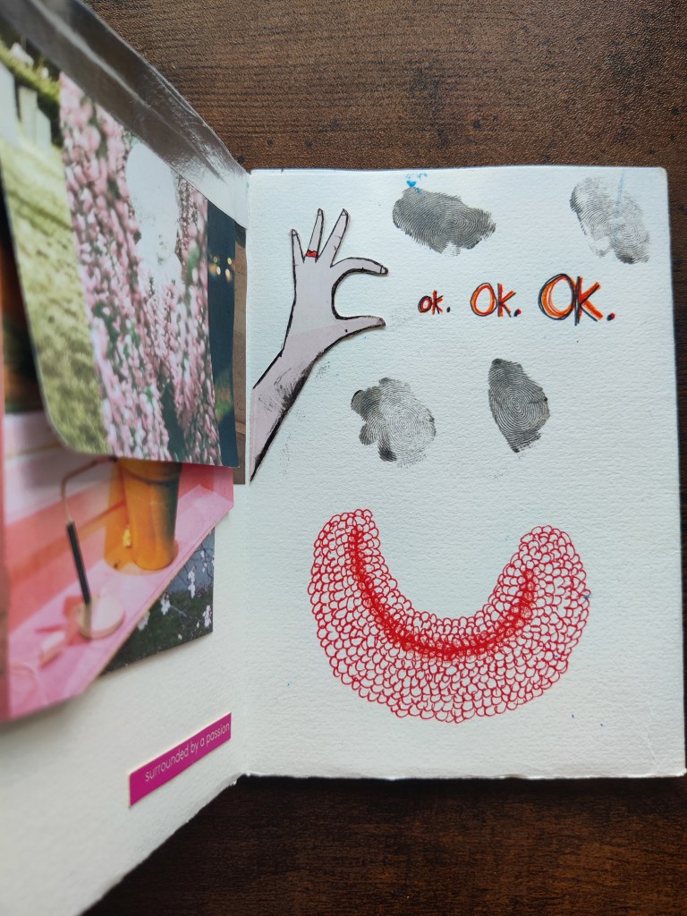These little books have been the backbone of my art journey. They give me the feeling of freedom and bravery. I create zines in A3, A4 formats, sometimes smaller. I experiment by fusing texts, drawings and collages made from magazine cutouts and discarded materials. I want to repurpose everyday found objects into vibrant expressions. Through these little books, I hope to share fragments of my world, and I hope you’ll find meaning in the details.